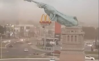 A powerful storm swept through the area late Tuesday night, toppling a massive 115-foot replica of the Statue of Liberty and leaving residents stunned by the scale of the destruction. …
